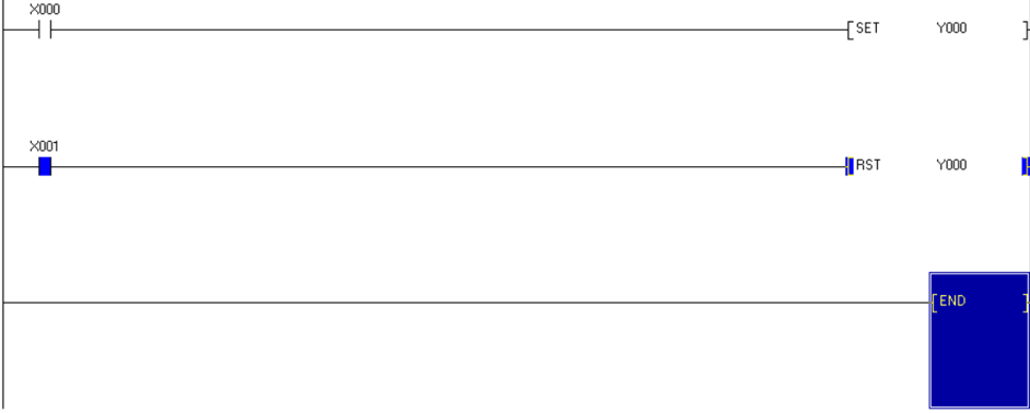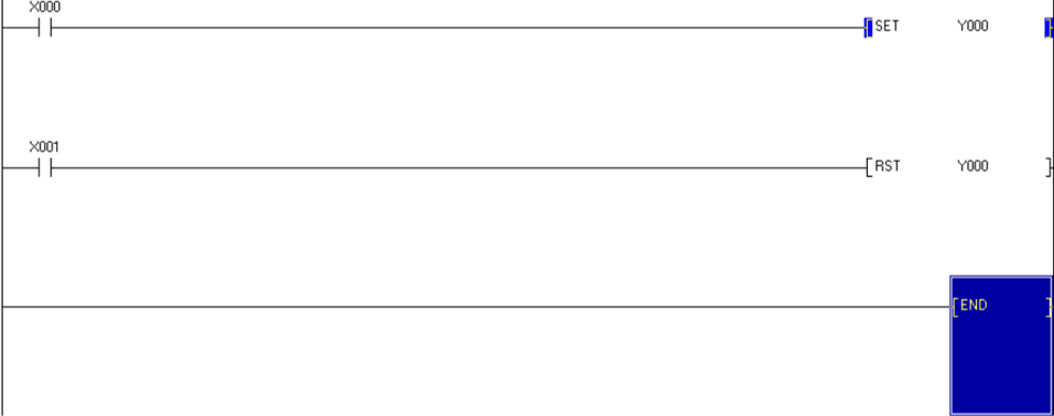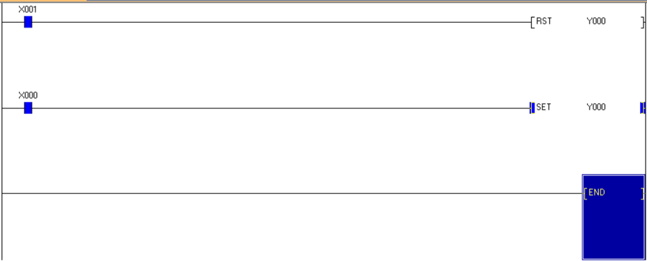 1. Set จะเป็นฟังก์ชั่นที่ใช้ในการค้างสถานะทำงานถาวร ถ้าจะให้มองภาพง่ายๆ เหมือนกับตอนที่ใช้งานในรูปแบบ Self-Holding ยกตัวอย่างการใช้งานคือ การนำ X0 มาใช้งานแบบ NO ไปควบคุม Y0 ดังรูปด้านล่าง