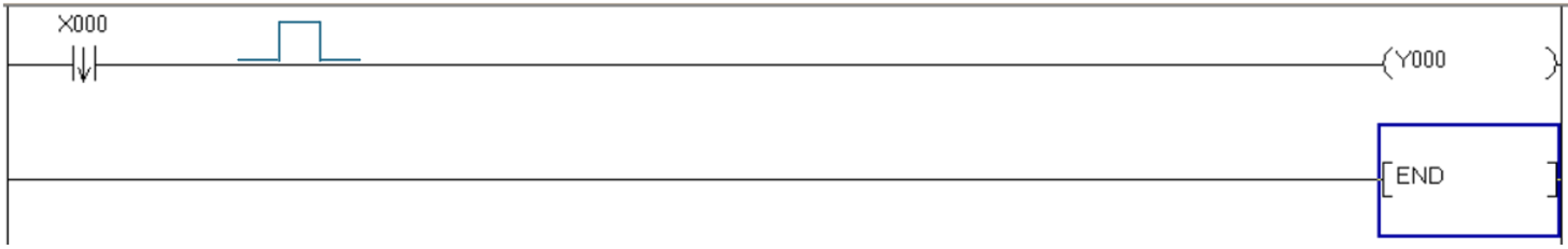 ผลลัพธ์ Rising Edge คือ เมื่อกด X0 แล้ว Y0 จะติดในระยะเวลาที่สั้นมากๆ แทบมองไม่เห็นว่ามีการเปลี่ยนแปลงอยู่ หากต้องการให้ Y0 ทำงานค้างสถานะนั้นจำเป็นต้องต่อแบบ Self-Holding หรือใช้งานฟังก์ชัน Set