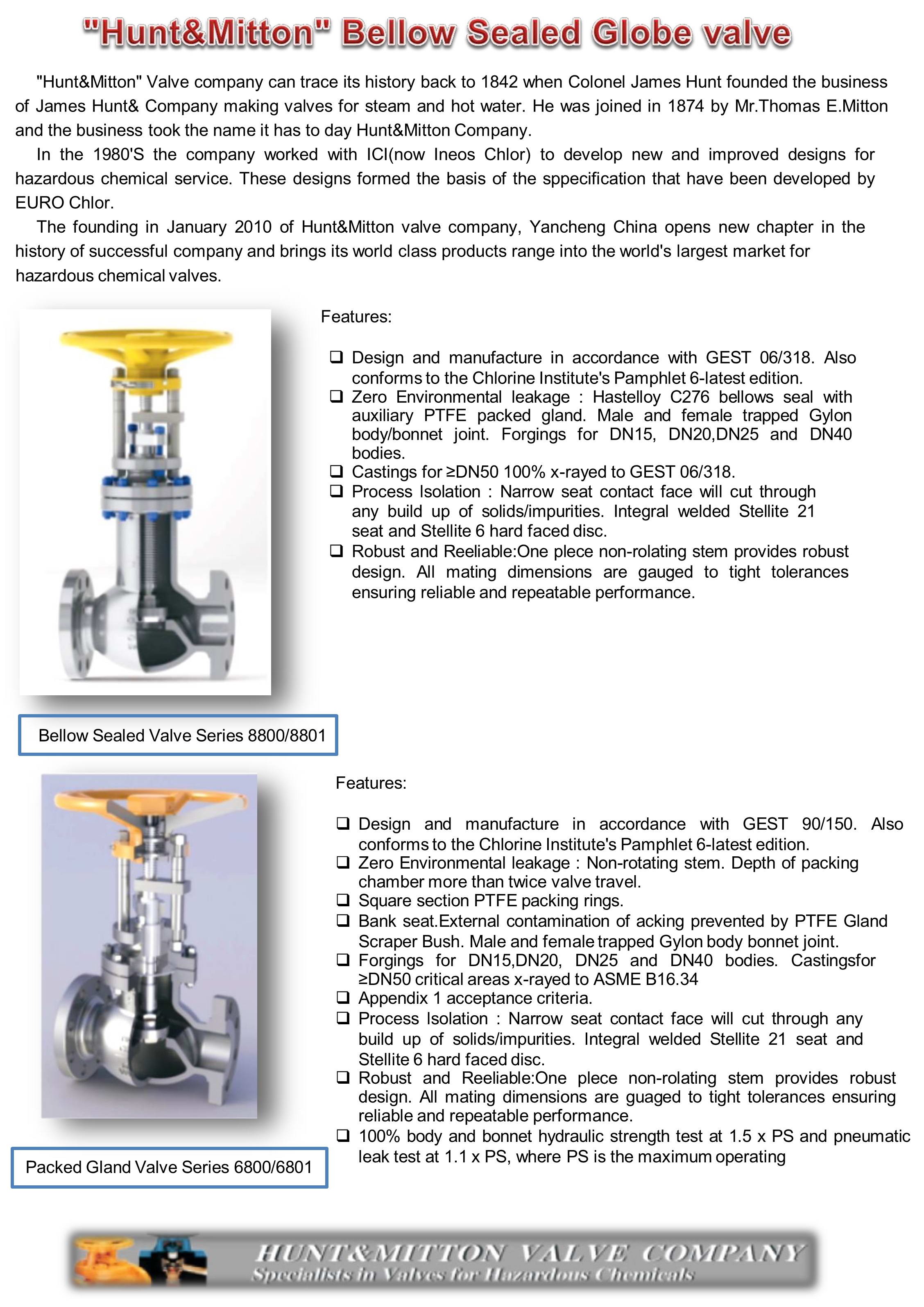 Hunt & Mitton – Metal Bellows Seal Globe Valve